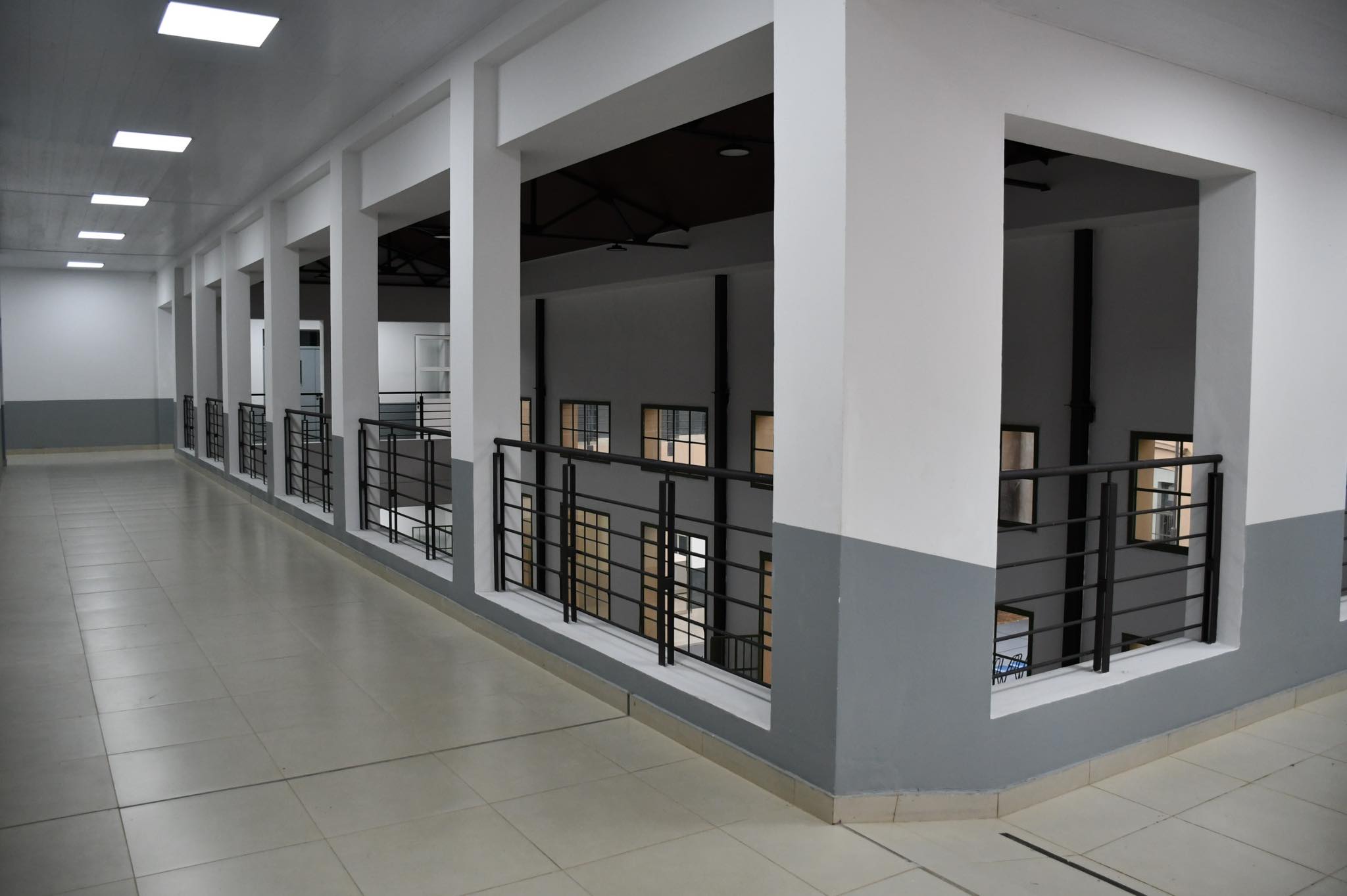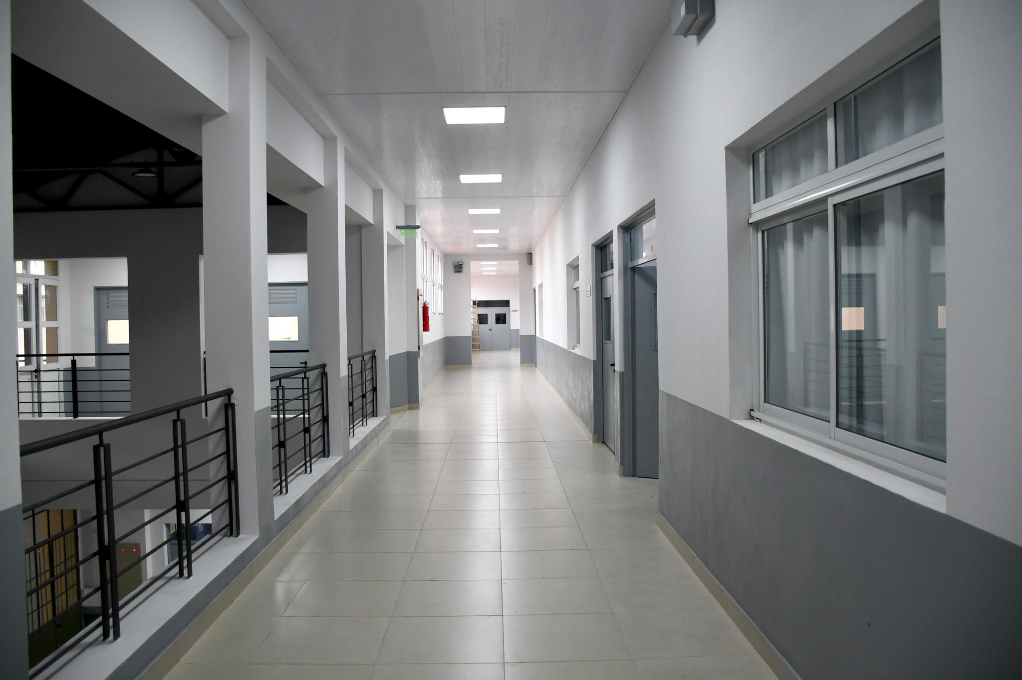 Remodelación de Espacios Interiores En el sector de aulas existentes, se reemplazó el piso por porcelanato con zócalos del mismo material. En la planta alta, el deteriorado piso de parquet fue sustituido por un piso flotante con estructura metálica, chapas de fenólico, contrapiso liviano y porcelanato.